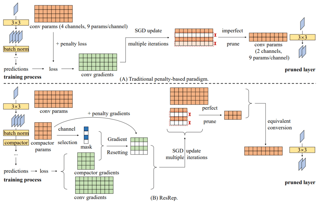 2021年10月,清华大学脑与认知科学研究院丁贵广团队在计算机视觉领域国际顶级会议 ICCV发表了一篇题为“ResRep: Lossless CNN Pruning via Decoupling Remembering and Forgetting”的文章,提出了一种简单高效、性能优越的神经网络压缩(剪枝)方法,显著超越现有其他方法。
