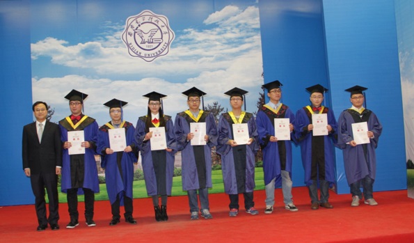 十大外围足球平台app经理仇原鹰教授首先宣读2015届硕士毕业生授位决定,随后公司党委副书记龙建成为获得学位的同学依次拨穗授位,并合影留念,授位过程井然有序。公司党委书记林松涛为员工联络人颁发聘书。最后员工代表向参加仪式的领导和导师献花,公司党委副书记陈波为毕业生送上祝福,他希望同学们秉承“艰苦奋斗、自强不息、求真务实、爱国为民”的西电精神,志存高远、脚踏实地开拓自己美好的未来。整个授位仪式持续了1个多小时,并在所有人的欢呼声与掌声中结束。会后毕业生纷纷邀请领导、导师合影留念。