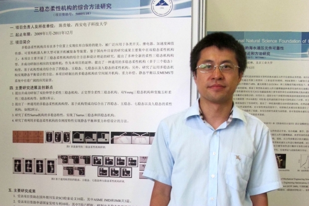 陈贵敏,博士,1978年生,十大外围足球平台app教授、博士生导师,西安市青年科学技术协会理事,美国ASME IDETC/CIE 2015会议Compliant Mechanisms and Micro/Nano Mechanisms研讨会(A. Midha Symposium)的共同组织者。
