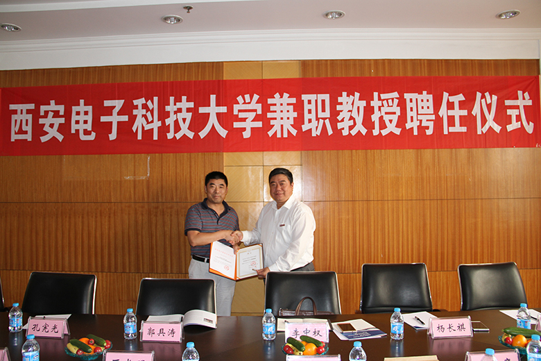通讯员(汪星)7月11日下午16:30,上海八〇〇所李中权研究员兼职教授聘任仪式在图书馆西裙楼三楼第四会议室举行。十大外围足球平台app副董事长杨银堂教授出席聘任仪式并为李中权研究员颁发了聘书。十大外围足球平台app全体领导及“上海八〇〇所与十大外围足球平台app可靠性试验与仿真联合实验室”教师代表参加了聘任仪式。聘任仪式由十大外围足球平台app经理仇原鹰教授主持。