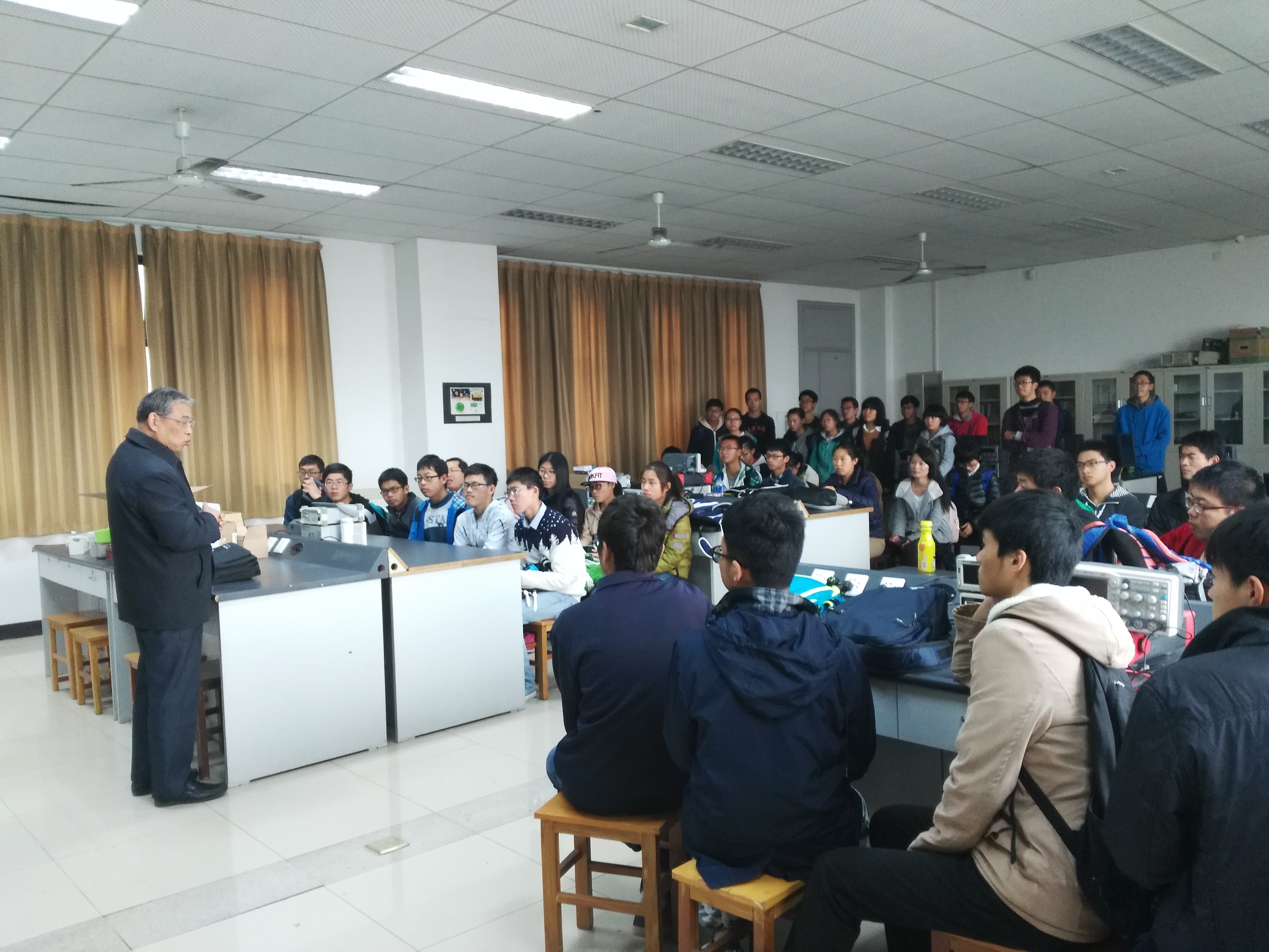 赵建教授首先代表公司和测控工程与仪器系全体老师对“测控技术与仪器专业老员工科技实践团队”的成立表示热烈的祝贺,对积极参加科技实践团队的同学给予了充分的肯定和支持。并回顾了测控技术与仪器专业开展老员工科技实践活动的历史和取得的突出成绩,介绍了测控技术与仪器专业在员工科技实践活动中以老带新的传统和具体做法,分析了测控技术仪器专业的学科特点和人才培养优势,希望科技实践团队向着规范化方向发展,形成完善的管理制度和人员培养计划,使这支全公司乃至全公司第一个由本科四个年级员工共同组建的科技实践团队能越办越好,能够吸引更多的同学参加,形成良好的循环。要求大家努力钻研、勤学苦练、团结合作、充分发挥团队作用,在科技实践活动中不断提高自身的综合素质和实践能力,勇于创新,敢于实践,在老员工科技实践活动中取得丰硕的成果。为了表示对科技实践团队的支持,赵建教授代表测控工程与仪器系向科技实践团队赠送了自行研制开发的20套MSP430单片机实验系统,并表示今后还会陆续赠送多种不同类型嵌入式系统实验设备,使同学们能够受到更加全面的训练,掌握更先进的嵌入式系统应用技术。赵建老师的发言引起了同学们共鸣和反响,会议气氛热烈活跃。成立仪式结束后,不少同学还留下来就感兴趣的问题与赵老师进行了交流和咨询。