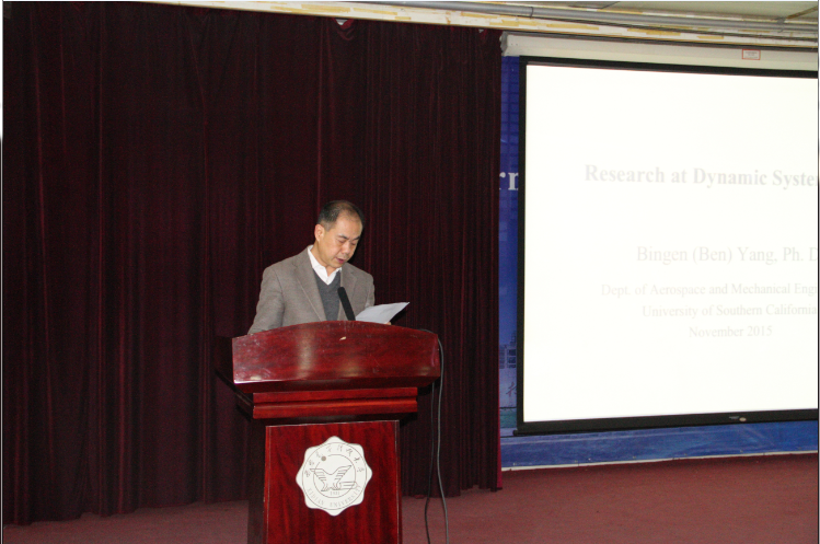 11月18日下午,应十大外围足球平台app副经理李团结教授邀请,美国南加州大学航天机械工程系终身正教授、南加大航天机械工程系动力系统实验室主任、美国机械工程师协会会士(ASME Fellow)杨秉恩教授来校进行学术交流,并在北校区图书馆西裙楼3楼报告厅作了题为“Modeling & Analysis of Wrinkled Membranes–An Overview”和“Dynamic Analysis of Plates and Shells by the Distributed Transfer Function Method”的两场学术报告。报告会由十大外围足球平台app经理仇原鹰教授主持,十大外围足球平台app近200名师生到场聆听报告。