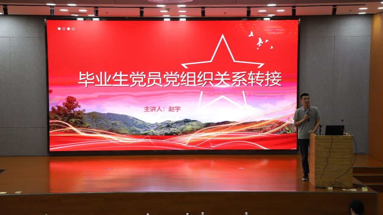 党课最后,公司党建与员工工作办主任赵宇进行了党组织关系转出流程介绍,帮助即将毕业的党员同学们更好的进行党组织关系转接。