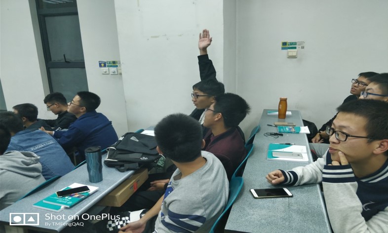 1704041班和1704021班于11月1日联合开展了此项竞赛活动。活动开始后,首先进行的是必答题环节。两个班以宿舍为单位,共组成十三个小组。每个小组代表分别从十三套题中选择一套,并在规定时间内作答。答题过程中,赵宇老师针对诸如国家奖学金与国家励志奖学金的问题,向同学们进行了详细地讲解。