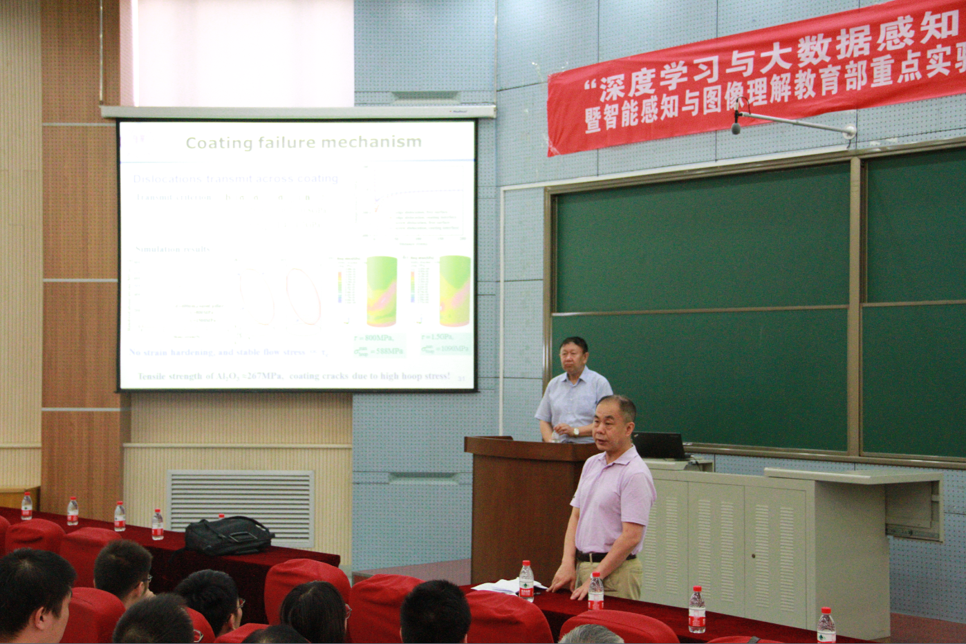 庄茁教授首先从上世纪90年代在微尺度晶体单轴压缩实验中发现了强度具有尺度效应讲起,详细讲解了其研究团队首创和发展的基于离散位错机制的晶体塑性模型理论和计算方法,接着介绍了该方法在单臂位错源控制的塑性流动和有涂层柱的约束塑性行为中的应用。研究成果在相关领域达到了国际领先水平,受到国外同行的追踪和报道。庄茁教授的报告内容引起了在场师生的浓厚兴趣,参会人员踊跃提问,庄教授对提出的问题一一作了详细解答。