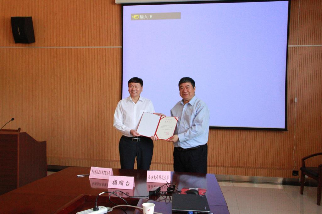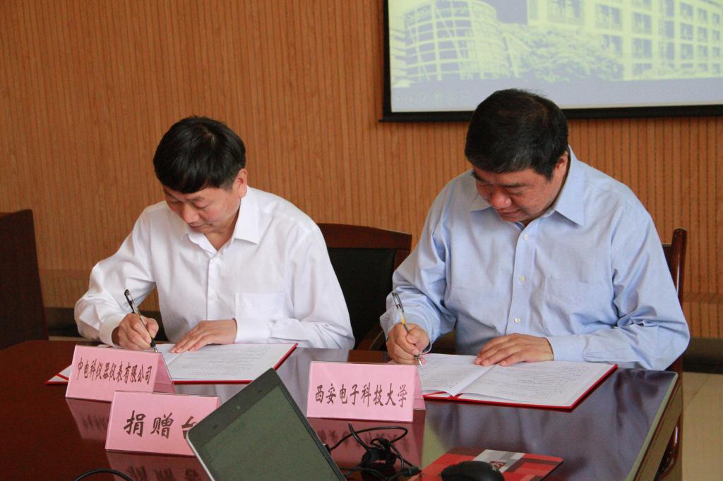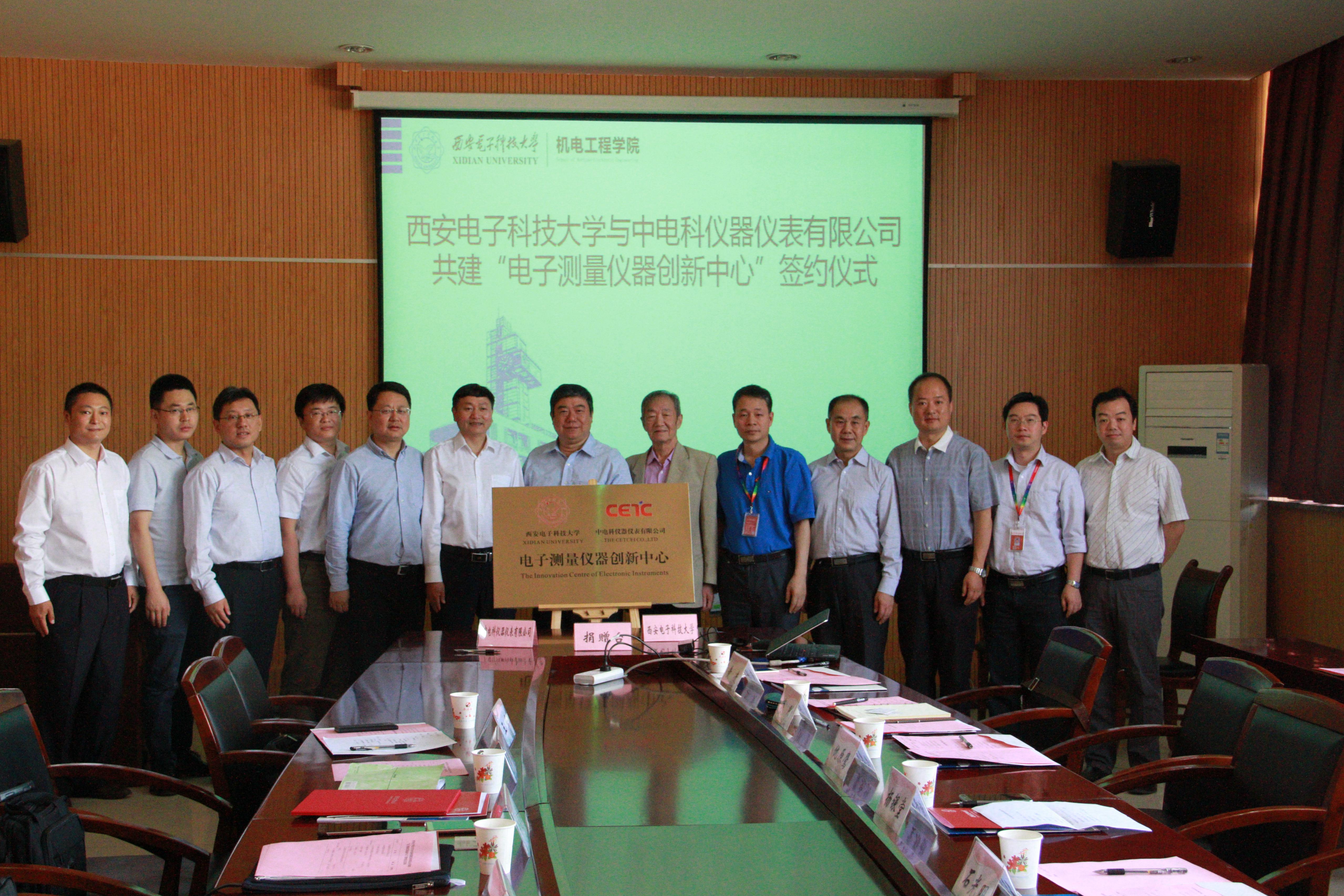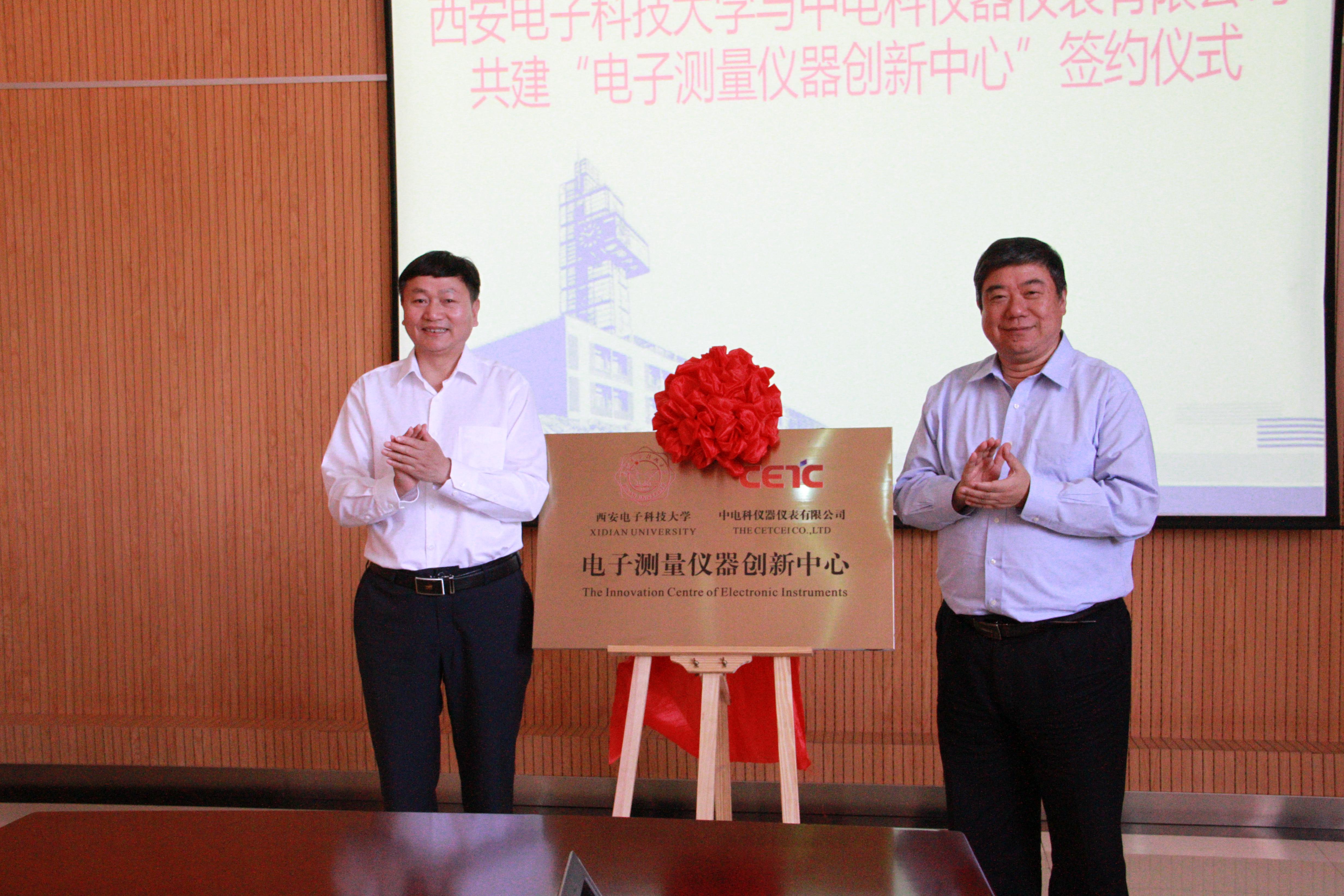 西电十大外围足球平台app新闻网讯(通讯员葛持恒)5月25日上午,由十大外围足球平台app、中电科仪器仪表有限公司共建的电子测量仪器创新中心签约暨揭牌仪式在十大外围足球平台app北校区科技楼协同创新中心会议室隆重举行。十大外围足球平台app副董事长杨银堂、中电科仪器仪表有限公司副总经理许建华共同为创新中心揭牌。