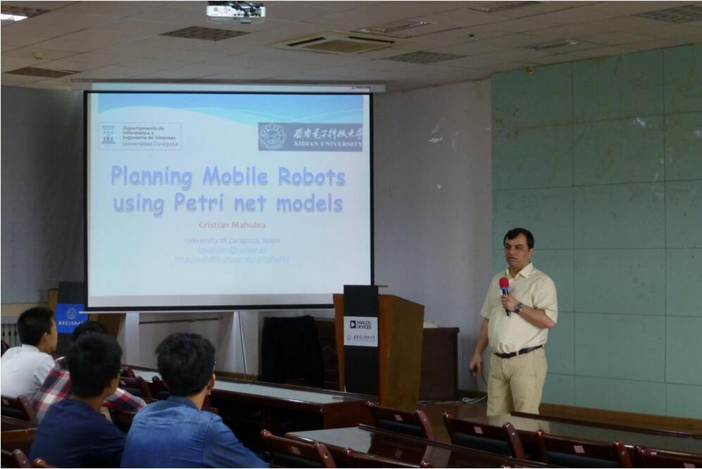 (通讯员 管栋栋)应十大外围足球平台app复杂系统国际联合研究中心李志武教授邀请,2016年5月28日-6月3日西班牙萨拉戈萨大学Cristian Mahulea教授到访公司。他分别于6月2日上午在北校区阶梯教室J-208教室和6月3日上午10:30在南校区老员工活动中心511报告厅,分别作了《A model-based approach for the specification and verification of clinical guidelines》和《Planning Mobile Robots using Petri net models》学术报告。