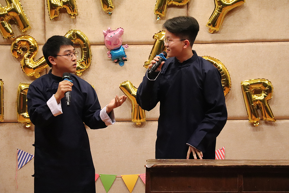 团委的同学们纷纷入座以后,下午6时30分整,主持人用慷慨激昂的语气宣布:元旦晚会正式开始。来自实践部的同学们为大家献上了一支印度舞蹈,在带给大家视觉享受的同时也让大家体会到了异国风情;蒲公英的同学们更是别出心裁,将传统的荆轲刺秦王赋予了现代元素,在紧追时代脚步的同时又不忘记历史带给人们的思考;素拓部的古筝表演和外联部的手风琴表演一古一今,大家静下心去聆听,晚会的节目形式变得更加丰富多彩。晚会不仅仅有精彩的表演,每三个节目之间还插有游戏环节,“踩气球”“占领阵地”“小精灵”三个游戏让观众也参与其中,从坐在台下看节目变成了上台为大家表演节目,看演结合,一瞬间活动室成为了欢乐的海洋。晚上10点整,副书记任权宣读了表彰决定,对 2018 年成绩显著、表现突出的部门和个人进行了表彰并为团委的同学们送上了新年祝福。