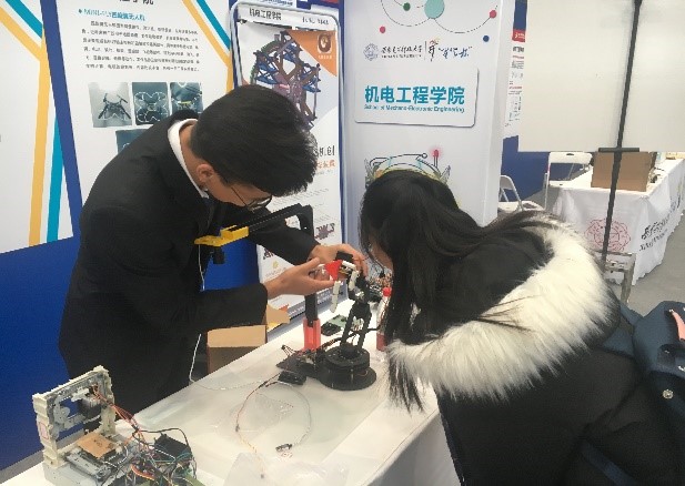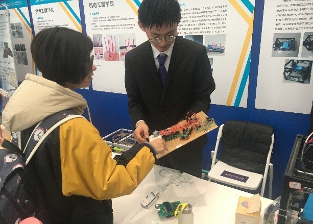 早在主馆的开幕式正式开始之前,副馆作品展区就已经热闹非凡。在公司团委老师及科协的精心筹备下,公司展区的优秀作品琳琅满目。一路杀进冠军争夺赛的柔性抓取机械爪、创新设计的激光雕刻机,各种炫酷机器人等高水平作品展现了十大外围足球平台app学子卓越的科技创新水平与科技实践能力,由低年级同学制作的遥控小车、光立方也充分体现了他们对科技制作高昂的热情,趁着“星火杯”的东风,公司再次掀起一阵科技创作的热潮。讲解人员也是早早到位,为前来参观的嘉宾献上最专业最细致的讲解,展现十大外围足球平台app员工的独特风采。