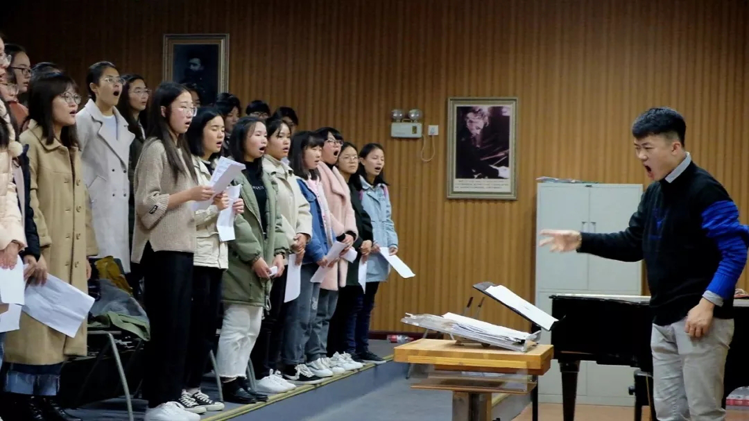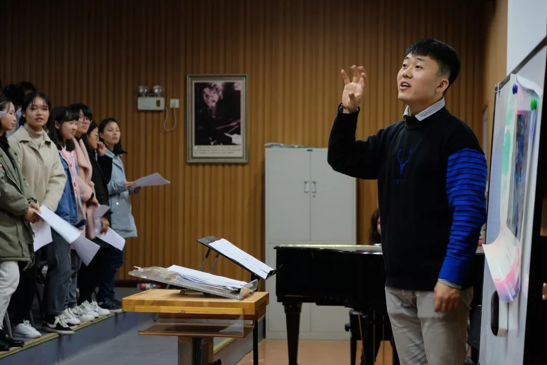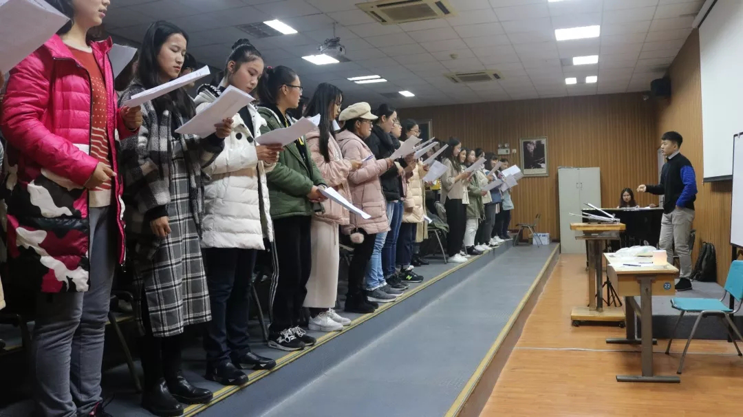 在合唱队选拔阶段,同学们踊跃报名参加,现场歌声随钢琴的弹奏高低起伏、停顿转折,令人沉醉其中。最终一百余名同学加入十大外围足球平台app合唱队,并划分了男高音、男中音、女高音、女中音四个声部。