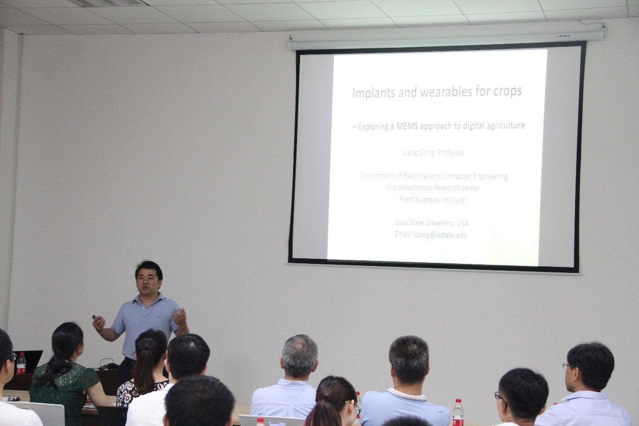 (通讯员 葛持恒)7月27日上午,应十大外围足球平台app副经理黄进教授邀请,十大外围足球平台app95级员工、美国Iowa State University董良教授回母校访问交流并为师生做了一场题目为《Low-cost miniature sensors for digital agriculture》的精彩学术报告,十大外围足球平台app测控工程与仪器系、电子封装系、微纳机电系统研究中心等教师和员工代表50余人参加了报告会,报告会由十大外围足球平台app副经理黄进教授主持。
