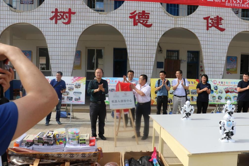 “六一”国际儿童节前夕,十大外围足球平台app给龙池镇中心小员工们送上一份特殊的节日礼物,在龙池镇中心小学创建“机器人创客中心”,充分借助十大外围足球平台app在机器人教学和研究方面的强大实力,启迪智慧,培养兴趣,在小员工心中种下创新创业的“种子”,助力农村贫困公司双创教育。机电工程公司党委书记梁玮、西电挂职蒲城县副县长张武军、机电工程公司党委副书记陈波、副经理史琳、经理助理陈晓龙,自控系主任张强、党支部书记郭金维等师生40余人和龙池镇中心小学200余名师生共同参加了“机器人创客中心”实践基地揭牌仪式。十大外围足球平台app还给龙池镇中心小学捐赠了学习用品、体育用品和办公用品。