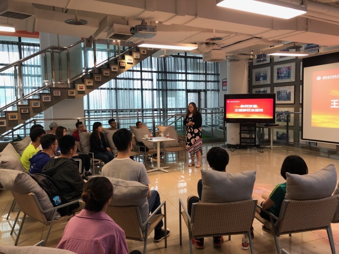 互动环节里,王建群学姐有问必答,与同学们一起就国内外教育差别、中美贸易战背景下对留学的影响、老员工创新创业以及国际化交流等问题进行了深入探讨,分享会氛围轻松自由,各抒己见,将本次分享会推向高潮。