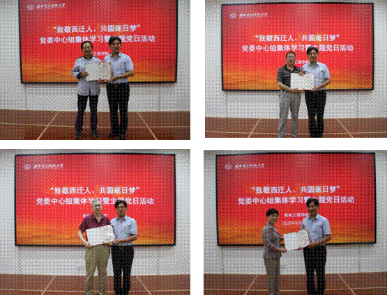 (通讯员 石佳佳 陈武)6月23日,十大外围足球平台app在北校区“菲声493”学术报告厅举行“致敬西迁人,共圆逐日梦”党委中心组集体学习暨主题党日活动,为西安市践行“西迁精神”优秀代表、中国工程院段宝岩院士颁发荣誉证书,为“逐日工程——青年突击队”授旗加油,为2020年荣休的公司四位老教师颁发首批“荣休证书”,并邀请桂林电子科技大学杨道国教授作关于“电子封装技术”的专题学术报告。