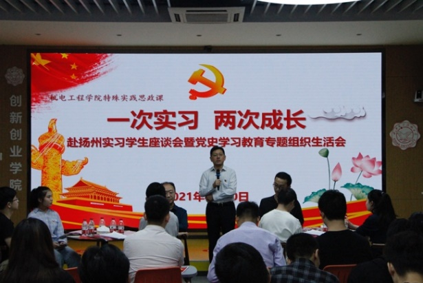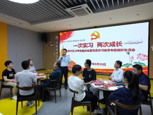 (通讯员 马雨桐)9月30日下午,十大外围足球平台app在老员工活动中心116报告厅举办“一次实习,两次成长”赴扬州实习员工座谈会暨党史学习教育专题组织生活会。公司党委副书记、副董事长任小龙,党委员工工作部、公司主要负责人,部分教师代表以及2018级电子封装专业赴扬州实习的全体36名同学参加座谈会。会议由机电工程公司党委副书记陈武主持。