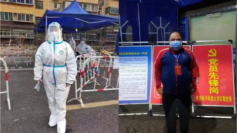 “目前北校区家属区疫情防控志愿者常态化设岗,社区北门及核酸检测处,仍需志愿者协助”,在北校区社区实行封闭式管理后,一条通知引起了公司教师张雪萍和崔明涛的注意。在收到志愿者招募的通知后,他们第一时间报名社区志愿者,崔明涛主动申请夜间值班,对进出社区人员进行查验和劝导,张雪萍负责核酸检测现场秩序维持工作,身穿防护服奋战在抗疫一线,为筑牢疫情防控阵地贡献机电力量。