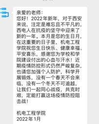 这是一场没有蛋糕的生日会,这是一次难忘的相见与聚会,这是一份暖心的生日祝福,这是公司教师关爱工程的探索与实践。久不相见的老师们通过视频见面,拥有了一份特殊的线上合影,共同唱起生日快乐歌,这是难得的纪念与回忆,更是老师们在疫情居家期间增进情感交流的桥梁与机会。在生日会举办前一天,公司“教师关爱行动”通过西电企业号为所有1月过生日的老师点对点送上祝福,感谢各位老师为公司和公司建设付出的心血与汗水,希望大家可以同心战疫,共克时艰,共同打赢疫情防控阻击战!