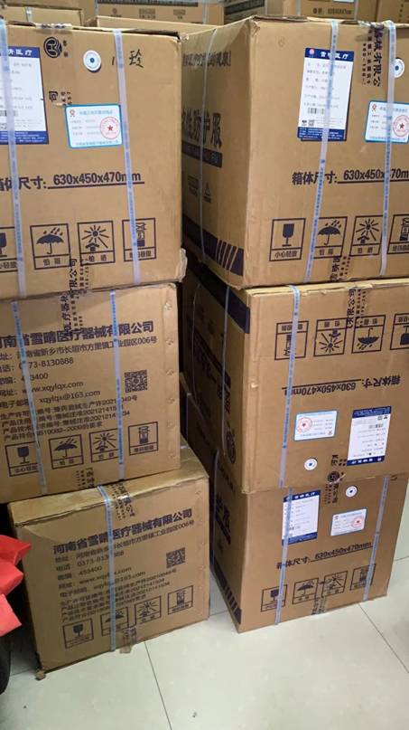 本批抗疫物资共计有1次性餐盒400箱(1250ml和750ml圆形餐盒各200箱,共计10万套)、防护隔离服5箱(共计300套)、消毒湿巾30箱(共计9.6万片),目前已全部投入公司抗疫工作中。