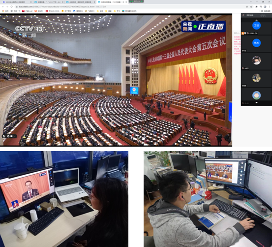电子封装系硕士生党支部的同学们通过腾讯会议共享屏幕的方式组织党员同志们一起在线观看了此次开幕会。支部书记徐占营说,通过观看第十三届全国人民代表大会第五次会议开幕式,再次深刻感受到面对新冠疫情和国外动荡环境,全国各族人民紧紧团结在以习近平同志为核心的党中央周围,在党中央的坚强领导下,我国的经济、教育、民生和改革迈上了一个新台阶,十四五实现良好开局。