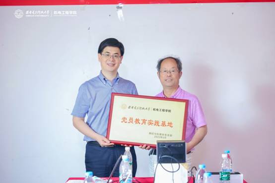 会上进行了“党员教育实践基地”揭牌仪式。王卫东和王向东作为双方代表,为测控与仪器系党支部“党员教育实践基地”揭牌。