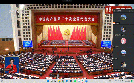 大会对全面建成社会主义现代化强国两步走战略安排进行了宏观展望,科学谋划了未来5年乃至更长时期党和国家事业发展的目标任务和大政方针,审视了当今世界和当代中国发展大势,从战略全局上对党和国家事业作出了规划和部署,指引全党全军全国各族人民坚定历史自信、增强历史主动,奋力开创中国特色社会主义新局面,坚定不移推进中华民族伟大复兴历史进程。收看直播过程中,师生们一起起立,共唱国歌;一同默哀,追思中国共产党老一辈无产阶级革命家,认真听取了习近平总书记《高举中国特色社会主义伟大旗帜,全面贯彻新时代中国特色社会主义思想,弘扬伟大建党精神,自信自强、守正创新,踔厉奋发、勇毅前行,为全面建设社会主义现代化国家、全面推进中华民族伟大复兴而团结奋斗》的主题报告,并在开幕会结束后开展了热烈的学习和讨论。