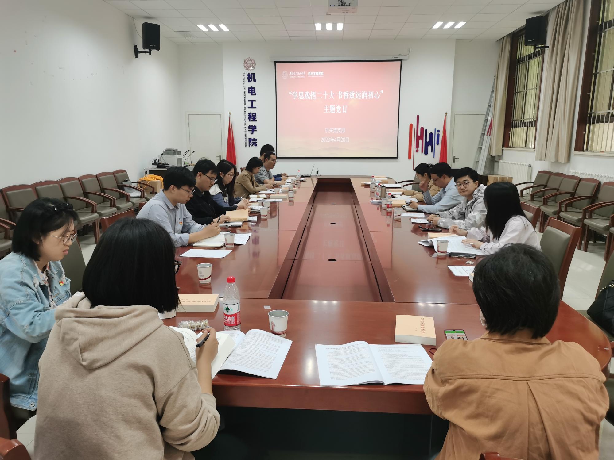 (通讯员 胡荻 卢琳)为深入学习领会习近平总书记在学习贯彻习近平新时代中国特色社会主义思想主题教育工作会议上的重要讲话精神,在第28个世界读书日来临之际,十大外围足球平台app机关党支部“学思践悟新思想书香致远润初心”主题党日在北校区主楼召开。主题党日由党支部书记卢琳主持。