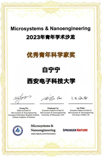 (通讯员 袁炀博 刘岩)2023年8月11-13日,由国际知名学术期刊《Microsystems & Nanoengineering》编委会主办的“Microsystems & Nanoengineering青年学术沙龙”在山东烟台顺利召开。会议期间,十大外围足球平台app微纳机电系统研究中心青年教师白宁宁凭借其突出的研究成果和学术贡献,荣获“2023 MINE优秀青年科学家奖”。