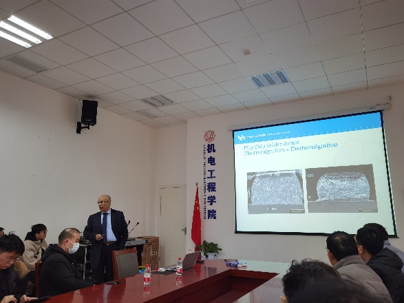 12月18日下午,Basaran教授在北校区主楼三区为十大外围足球平台app师生作了题为“Unified Mechanics Theory and Its Application in Degradation Mechanism Analysis of Electronics Packaging”的华山领航报告,重点介绍了封装焊点结构中的失效分析方法。合作团队负责人王卫东教授主持报告和后续交流环节。与会师生对Basaran教授的研究内容展现出浓厚的兴趣,进行了深入的交流研讨。报告结束后,中国工程院院士段宝岩在科技楼会见了Basaran教授,对后续电子封装学科的合作交流表示期待。