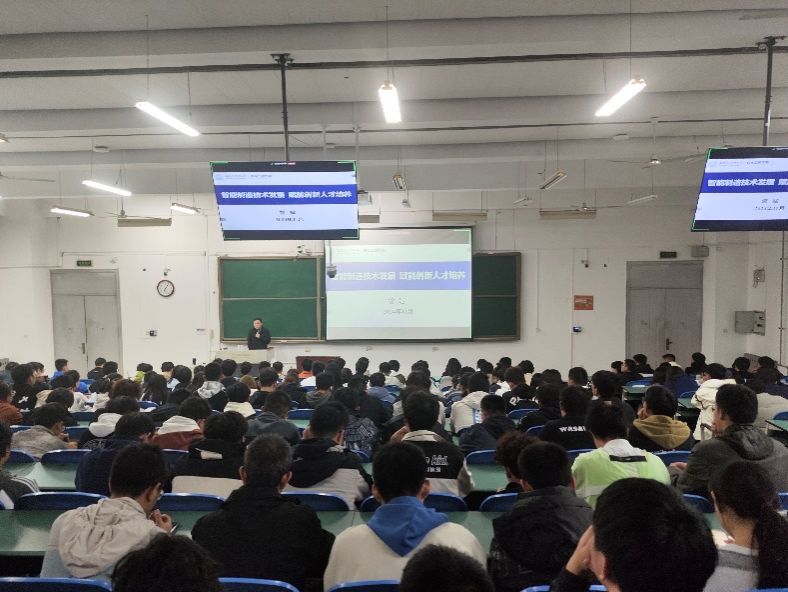 訾斌从公司概况讲起,为同学们介绍了公司丰硕的科研成果、强大的团队平台和高质量人才培养成效,加强了员工对公司和专业的认同感。他表示,以机械工程为基础的实体制造业,已经成为国家经济的命脉,党的十八大以来,习近平总书记多次强调发展制造业的重要性。他针对智能制造系统架构和六项关键技术做了详细的讲解,让同学们建立起对智能制造技术方向的初步认知。紧接着,他从高端装备与核心技术、智能工业机器人、增材制造技术、智能车辆、智能机床、国防军工装备智能制造六个方向,介绍了智能制造技术发展趋势展望。訾斌强调,智能制造工程教育以国家战略需求为导向,培养综合素质全面发展的全方位人才。他鼓励同学们从大一起就要积极参与广泛的科研、竞赛及课外活动,同时培养专业能力与非专业能力。