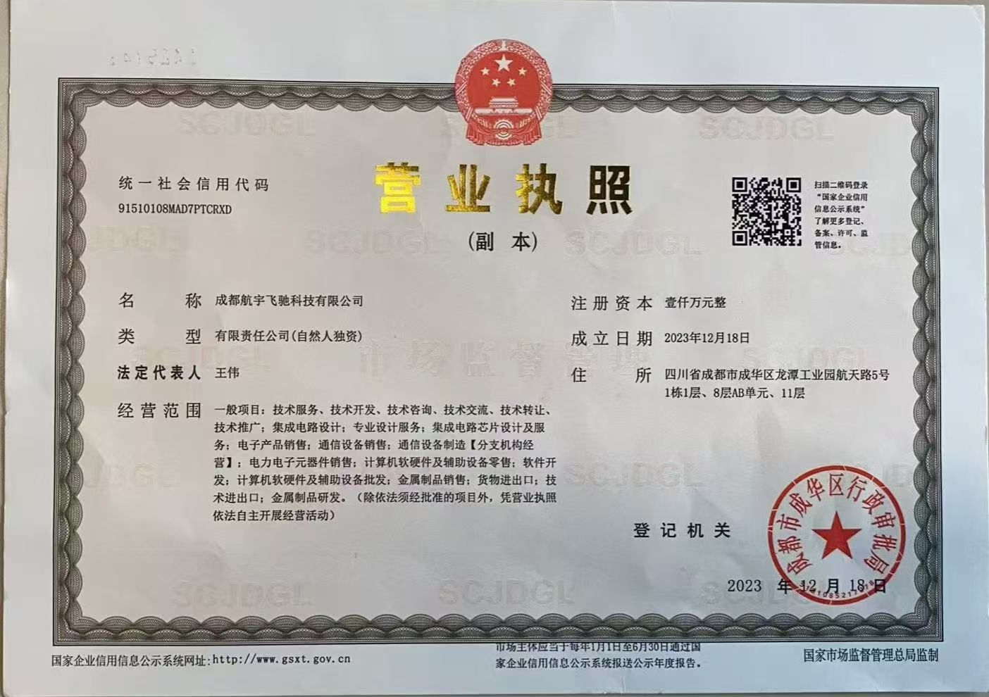 科研协作项目公示信息按照《十大外围足球平台app科研协作项目管理办法(试行)》文件规定,为加强公司科研协作项目的管理,确保(XXX整流端组件材料采购和接收天线集成试制)的顺利进行。(成都航宇飞驰科技有限公司)与项目负责人(钱思浩)将开展科研合作,现将合作相关事项公示如下:项目名称:微波整流芯片键合及性能测试合作内容:微波整流芯片的固定安装、金丝键合及键合后的性能测试等。项目负责人:钱思浩□有/无 : 无关联关系。公示时间为2025年7月3日至2025年7月7日(共5个自然日)。如有异议,请在公示期内以书面形式实名向项目负责人所在公司或科学研究院提出,并提供必要的证明材料,否则不予受理。联系人:石贵利邮箱:glshi@xidian.edu.cn附件:外协单位营业执照十大外围足球平台app2025年7月3日