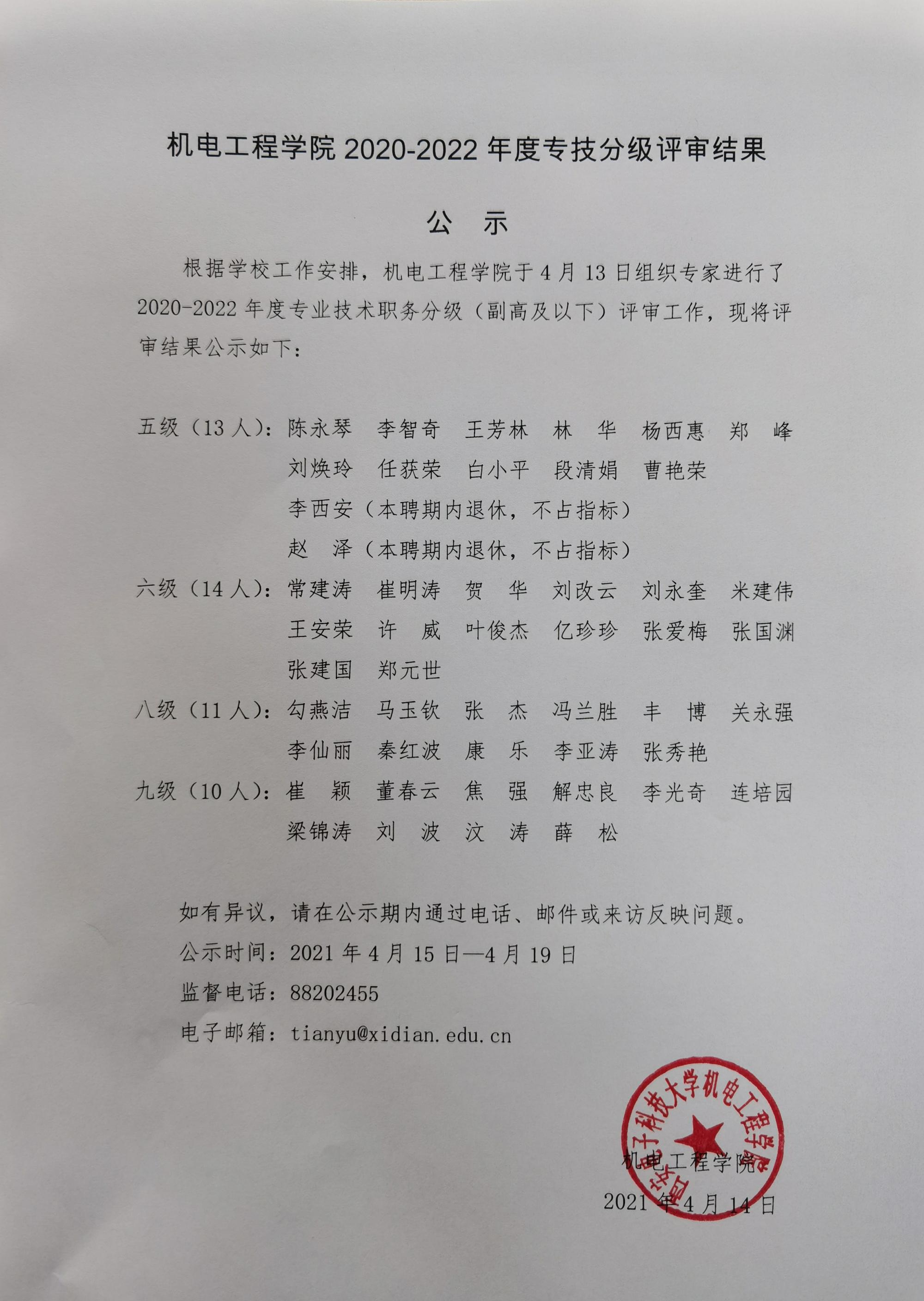 十大外围足球平台app2020-2022年度专技分级评审结果公示