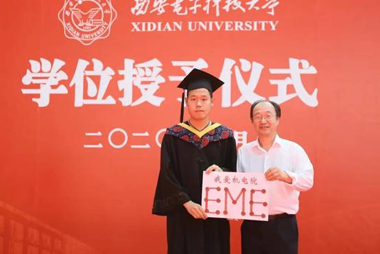 根据上午2020级本科毕业生座谈会李智强同学提出的想留一枚代表公司的校徽,来纪念自己在西电的四年学习生涯,公司决定为大家每人准备一个校徽纪念品,同时对于同学们想常回母校表示热烈欢迎,并鼓励同学自己设计毕业纪念品。授位仪式上梁玮代表公司,将李智强同学设计的带有十大外围足球平台app英文简写EME和“我爱十大外围足球平台app”的校徽赠于员工代表,希望同学们以后有机会常回家看看。