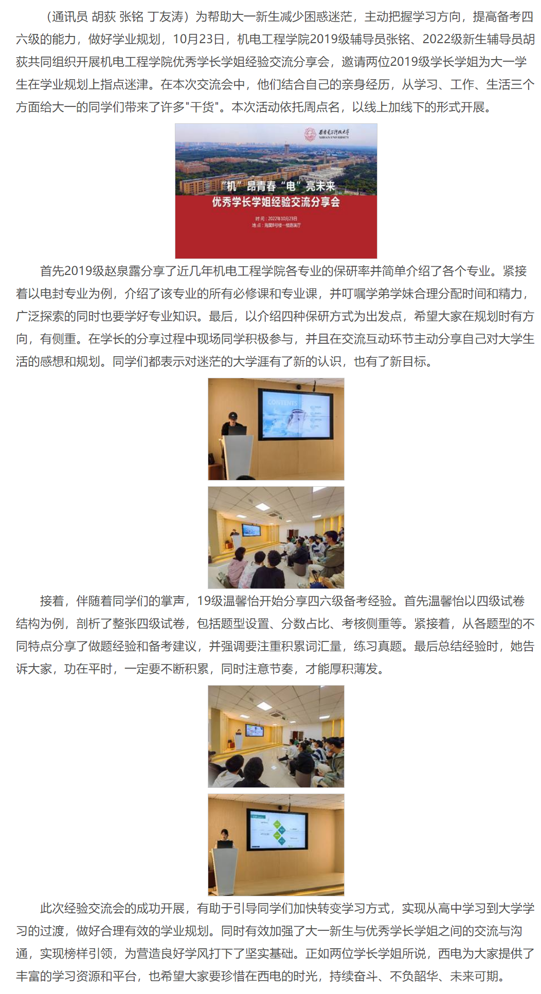 “机”昂青春,“电”亮未来|十大外围足球平台app优秀学长学姐经验交流分享会