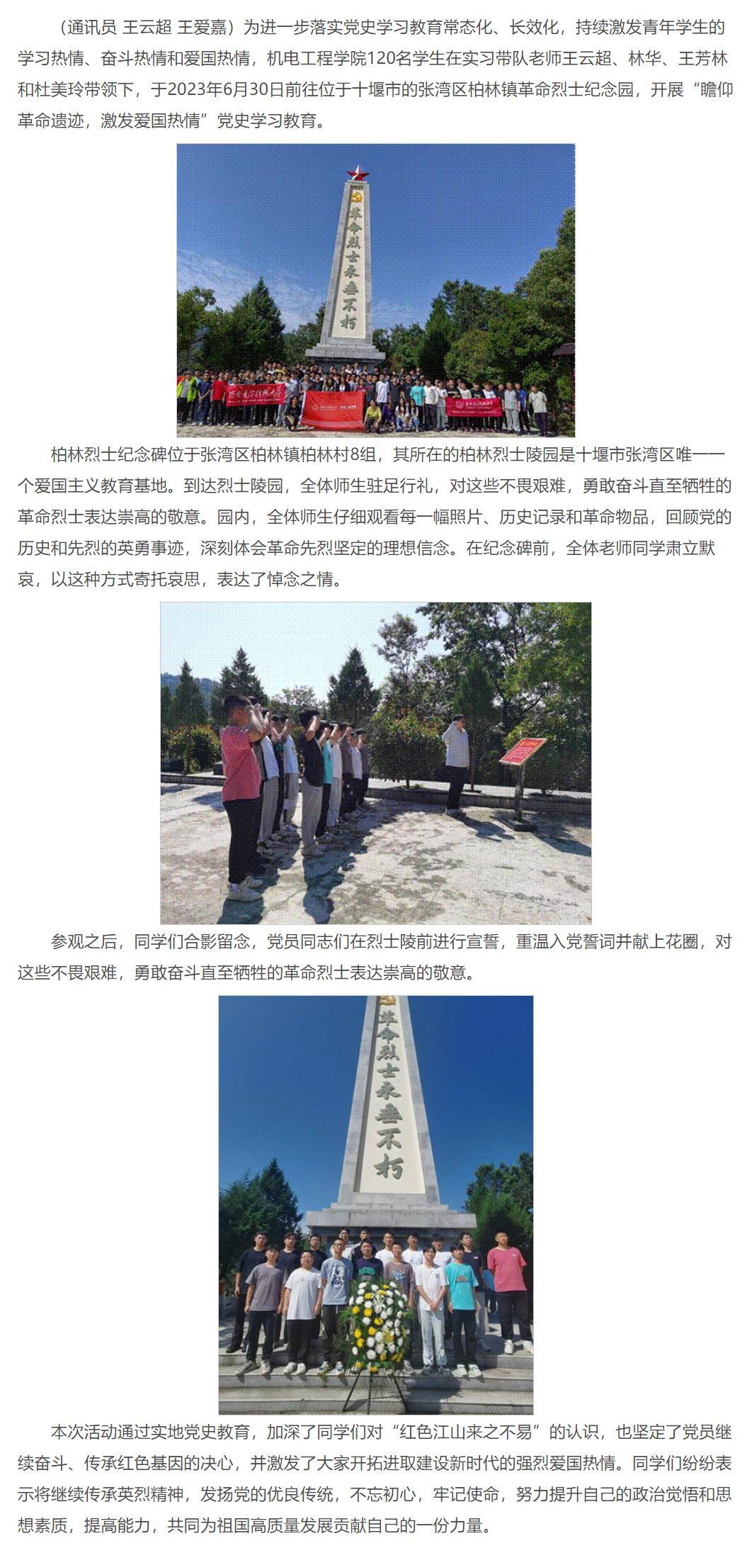 十大外围足球平台app赴十堰生产实习师生开展“实习不忘革命先烈,陵园重温入党誓词”党史学习教育