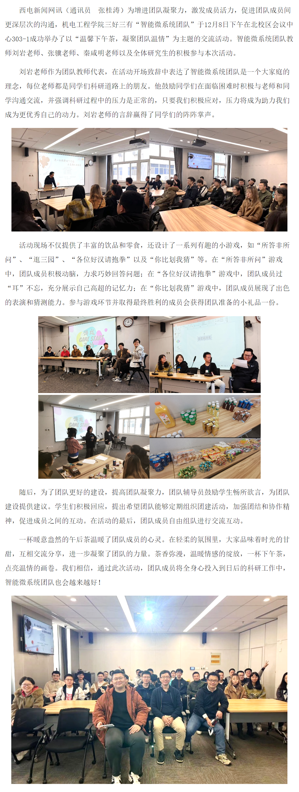 鲜电下午茶 | 三好三有“智能微系统团队”举办“温馨下午茶,凝聚团队温情”为主题的交流活动