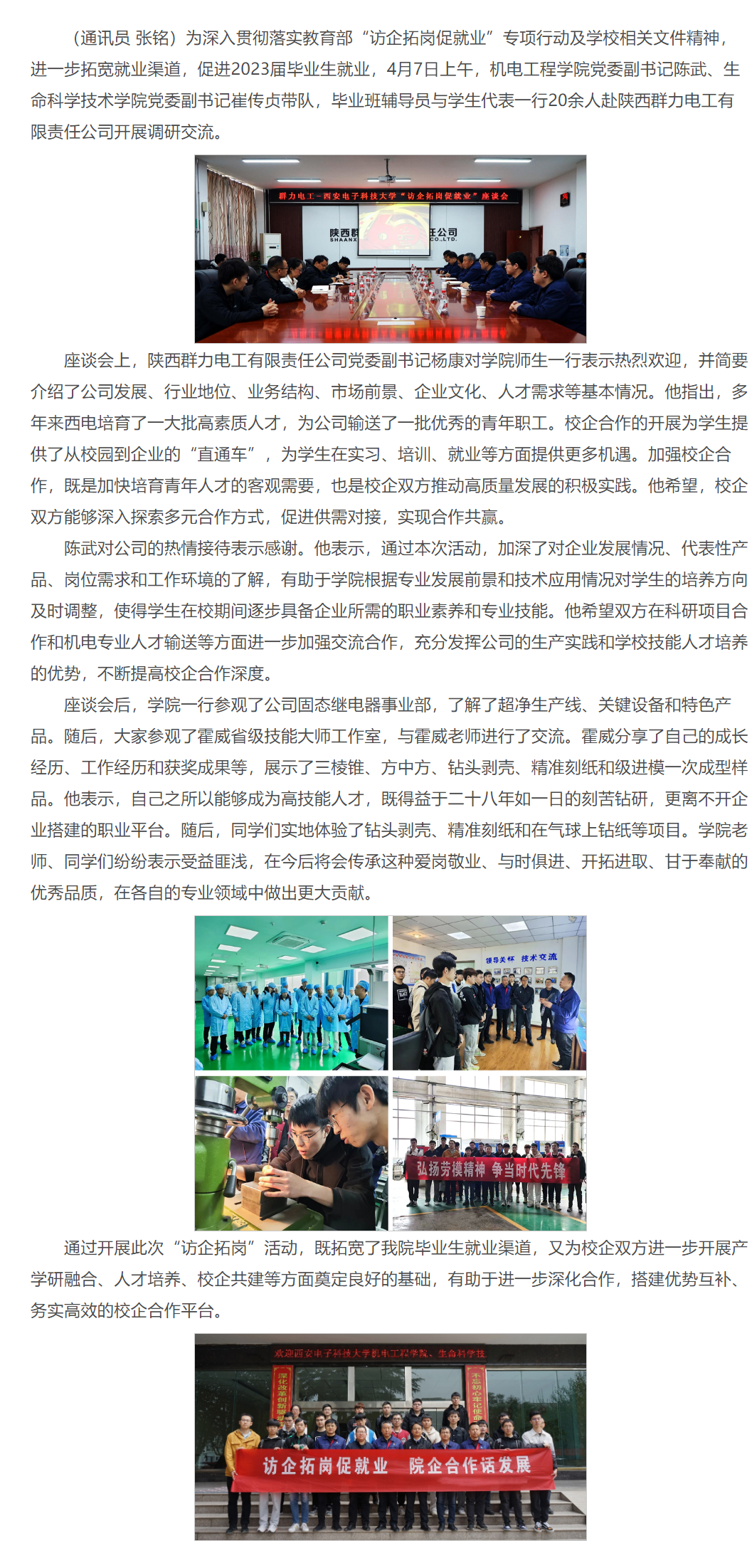 十大外围足球平台app赴陕西群力电工有限责任公司开展访企拓岗专项行动