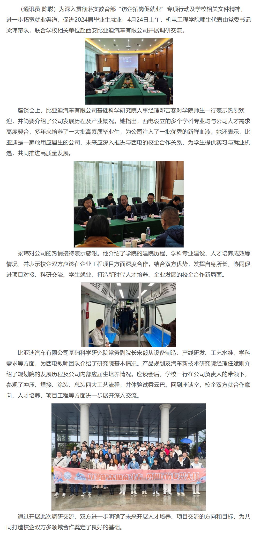 十大外围足球平台app赴西安比亚迪开展访企拓岗调研交流