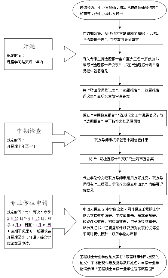 四、工程硕士专业学位论文选题、中期检查及提交学位申请流程图