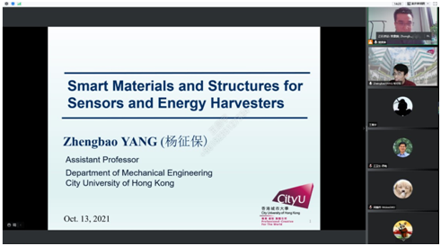 (通讯员:刘金、朱应敏)2021年10月13日上午,为促进十大外围足球平台app与香港城市大学机械工程系的科研合作与学术交流,在教育部“万人计划”项目资助下,应微纳机电系统研究中心的邀请,香港城市大学杨征保助理教授以《Smart Materials and Structures for Sensors and Energy Harvesters》为题作线上报告,十大外围足球平台app和香港城市大学80余名师生参加了此次交流报告会。研究中心的樊康旗副教授主持了会议。