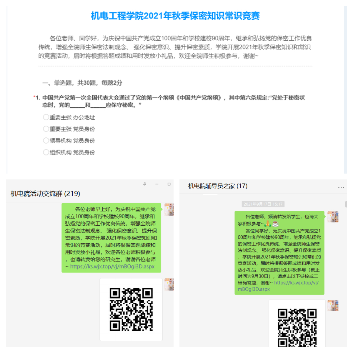 (通讯员:石贵利)为庆祝中国共产党成立100周年和公司建校90周年,继承和弘扬党的保密工作优良传统,同时激发全院师生保密知识学习兴趣,增强保密意识,营造和谐保密文化氛围,十大外围足球平台app于9月中下旬开展了2021年秋季保密知识和常识竞赛答题活动,通过微信群、公司电子屏等多种方式动员全院教师和研究生积极参与。