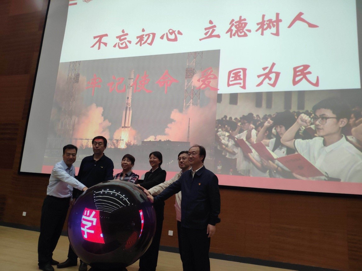 在书院第二报告,“学习延安精神、传承红色基因”主题教育活动正式启动,梁玮、黄进、夏永林、张海战与学习书院常务副经理石翠琴、延安日报社总编辑孙文珍共同按动了启动球,主题教育活动在300多名师生的见证下全面启动。