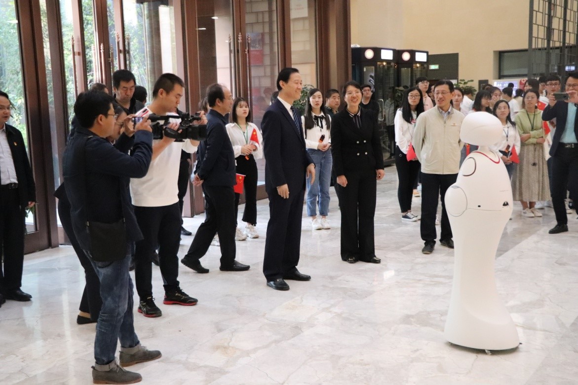 下午4点半,学习小分队与段宝岩院士一行在延安学习书院汇合。延安学习书院是全国首家宣传习近平新时代中国特色社会主义思想的实体平台,是学习新思想的高地,是宣传学习理念,展示用延安精神建设新延安的新窗口。十大外围足球平台app协同员工企业上海思依暄机器人公司为学习书院捐赠了两台智能机器人“西电•小暄”和“西电•小思”(意为宣传新思想),从而架起十大外围足球平台app与学习书院合作共建的桥梁。