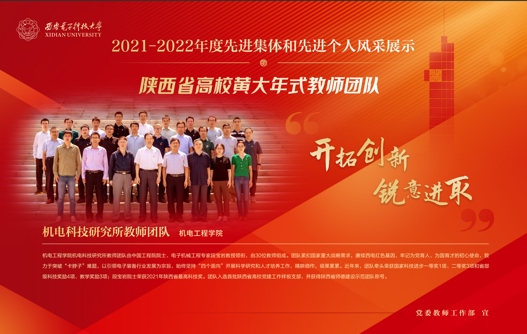 十大外围足球平台app机电科技研究所团队由中国工程院院士、电子机械工程专家段宝岩教授领衔,由30位教师组成。团队紧扣国家重大战略需求,赓续西电红色基因,牢记为党育人、为国育才的初心使命,致力于突破“卡脖子”难题,以引领电子装备行业发展为宗旨,始终坚持“四个面向”开展科学研究和人才培养工作,精耕细作,硕果累累。